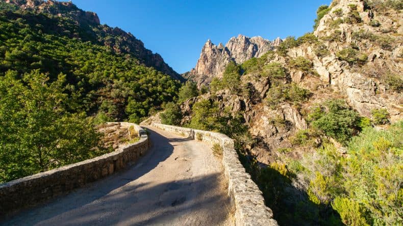 Die Gorges de Spelunca liegt auf der Westseite des Col de Vergio und erstreckt sich zwischen den Dörfern Ota und Evisa, wo sich auch die sehr berühmte Zaglia-Brücke befindet auch bekannt als Genuesische Brücke von Zaglia. Diese solltest du bei deinem Korsika Urlaub unbedingt aufsuchen und für ein schönes Fotomotiv ablichten.