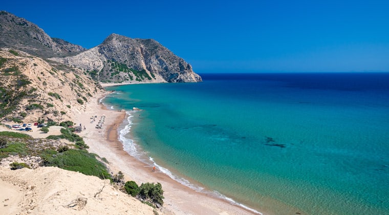 Du suchst einen schönen Sandstrand mit wenig Trubel? Dann ist der Cavo Paradiso im südlichen Zipfel der Insel die perfekte Wahl. Der Strand ist sehr abgelegen und deswegen auch nicht leicht zu erreichen, aber gerade deshalb ist dort besonders wenig los. Nur in der Hochsaison werden manchmal einige Liegen aufgestellt und vermietet. Ansonsten legst du dein Handtuch einfach auf den feinen Sand und genießt so die Bucht mit ihrem Panorama, die Übrigens ein Muss für jeden Fotofreund ist.