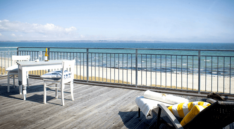 Auf der Terrasse kannst du mit einem leckeren Frühstück in den Tag starten oder gemütlich den Abend bei einem guten Wein ausklingen lassen, mit direktem Blick auf das Meer natürlich.