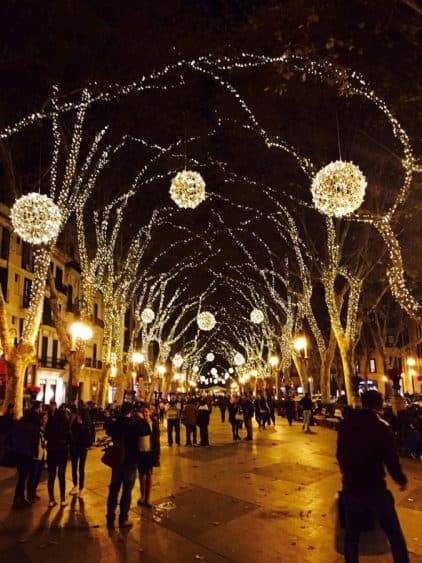 Ein Ausflug nach Mallorca lohnt sich immer. Im Dezember und Januar besonders – denn da erstrahlt die Hauptstadt Palma im schönsten Lichterglanz. Tagsüber genieße ich die Sonne bei Temperaturen um die 20 Grad mit einem Eis in der Hand bei einem ausgiebigen Shoppingbummel. Abends verzaubert die Weihnachsbeleuchtung in den Altstadtgassen und am Passeig del Borne, welcher sich unweit der berühmten Kathedrale La Seu befindet. Der Bummel durch Palma am Abend ist einfach wunderschön.