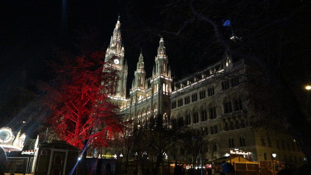 Wiener Christkindlmarkt mit traumhafter Sicht auf das Rathaus