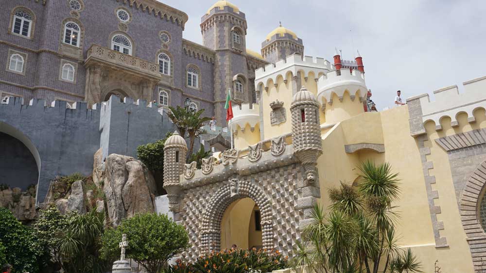 Nach dem unsere Belém Tour abgeschlossen ist, gehen wir am nächsten Tag einem Tipp nach, den wir kurz vor unserer Abreise bekommen haben. So steht die nahegelegene Kleinstadt Sintra auf unserer Liste der Top 10 Sehenswürdigkeiten in Lissabon. Mit dem Vorstadtzug fahren wir in nur 40 Minuten (ab Oriente) für 3,90 EUR (Hin-und Rückfahrt) nach Sintra. Was ich dort gesehen habe? Ist einfach unbeschreiblich. Um es in einigen Worten zu beschreiben: Sintra ist ein Märchenwald mit romantischen Schlössern, wie aus einem Bilderbuch. Wir haben 3 von 5 wichtigen Schlössern besichtigt: 1. Palácio Nacional da Pena (Eintritt 13€ pro Person), 2. Palácio de Monserrate (Eintritt 7,50€ pro Person) und 3. Castelo dos Mouros (Eintritt 7,50€ pro Person). Unglaublich schön und faszinierend, genieße ich jeden einzelnen Moment in Sintra und fühle mich tatsächlich wie im Märchen.