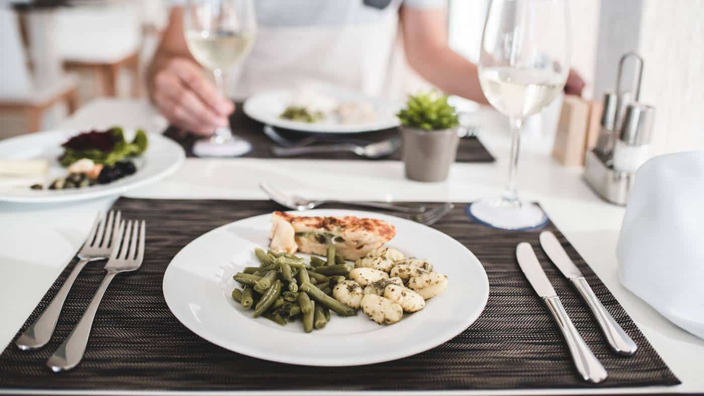Frühstück, Mittag- und Abendessen werden als Buffet im Haupt-Restaurant angeboten. Das Restaurant selbst ist sehr hell und freundlich – für manch einen mag das Ambiente ein bisschen zu steril sein, aber uns hat es sehr gut gefallen. Die Qualität war bei allen drei Mahlzeiten immer gut, wobei wir vor allem vom Abendessen ziemlich begeistert waren. Die Auswahl ist riesig und selbst für uns als Vollzeit- und Teilzeit-Vegetarier war immer etwas dabei. Je nach gewählter Verpflegung gibt es vormittags und nachmittags auch noch kostenlose Snacks an der Poolbar – sehr zur Freude von Romeo.