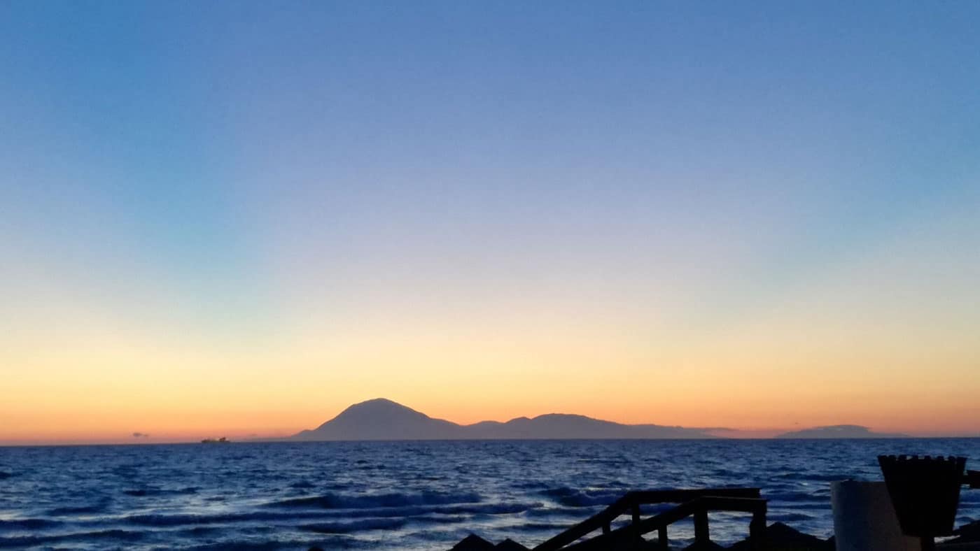 Für mich als Tagträumerin ist Bus fahren immer eine schöne Sache – ganz vorn auf den Begleiterplätzen hat man einen guten Blick auf die malerische Landschaft. Ein besonderes Highlight war jedes Mal die Fahrt von Kastro, ein Dorf auf einem Berg gelegen, runter nach Kyllini. An den Abenden konnte ich den Sonnenuntergang über dem Ionischen Meer und seinen Inseln beobachten. Mit dem warmen Orange und dem Glitzern des Meeres über das Tal hinweg wurden die Gäste gebührend begrüßt.