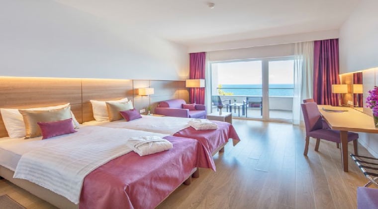 Das Valamar Carolina Hotel & Villas besticht nun durch frisches, stylisches Design. Es lieht ruhig, etwa 5 Kilometer vom Ort Rab entfernt und direkt am Strand. Bei der Verpflegung könnt ihr euch zwischen Frühstück und Halbpension entscheiden.