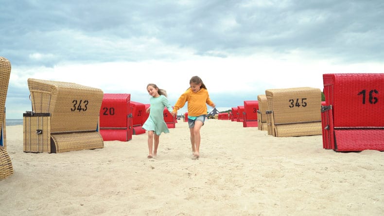 Nach einem spannenden Tag mit Naturbingo und selbstgebastelten Insektenhotels wollen Benita und Johanna an den Strand. Der liegt zum Glück nicht weit vom Hotelgelände. Angeregt durch die Entdeckungen im Wald, nehmen die beiden auch hier die Natur ganz genau unter die Lupe. Sie suchen nach Muscheln und kleinen Tieren, bauen eine Sandburg und laufen am flachen Ufer durch die anbrandenden Wellen. Zum Abschluss ein Eis und der Tag ist perfekt.