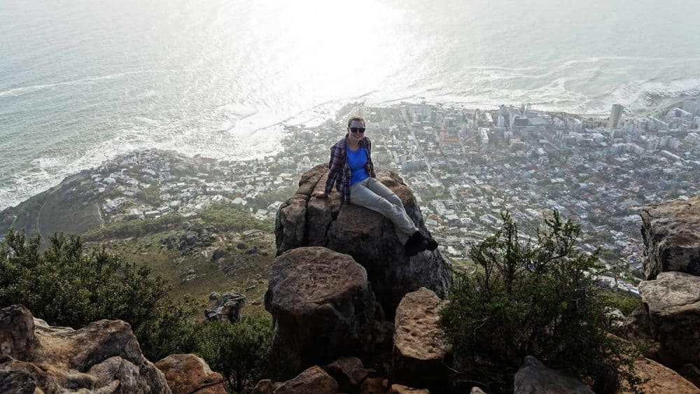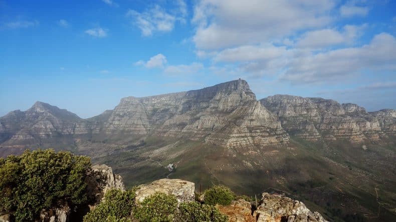 Am nächsten Tag schien nach Tagen mit Nebel und Regen endlich mal die Sonne und wir nutzten das gute Wetter, um auf den Tafelberg zu fahren. Die Fahrt mit der Seilbahn kostete knapp 17 Euro und dauerte nur wenige Minuten. Oben angekommen, hatten wir einen wunderbaren Blick auf die ganze Stadt. Ein bisschen wandern wollten wir aber dennoch, deshalb folgte dann am Nachmittag der Aufstieg auf den knapp 700m hohen Berg Lion’s Head. Nach knapp 2 Stunden Gekraxel wurden wir mit einem atemberaubenden Blick auf‘s Meer und die Bergkette „12 Apostel“ belohnt.