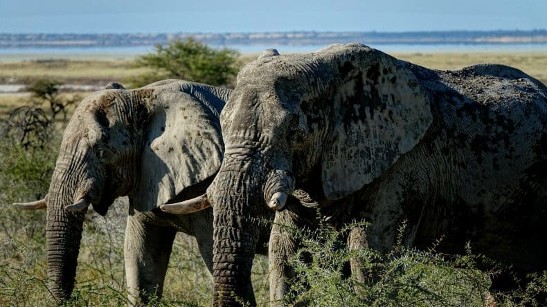 Am nächsten Morgen wartete gleich das erste Highlight auf uns. Wir hatten uns als Auftakt unserer Reise eine 3-tägige Safari durch den Etosha Nationalpark im Norden des Landes gebucht. Es ging pünktlich los und nach einer kurzen Inforunde durch den Veranstalter fuhren wir im großzügigen Safari SUV Richtung Norden. Unsere Gruppe war super international – von Norwegern über Japaner und Australier waren ziemlich viele Nationen vertreten. Was folgte waren drei wirklich wunderbare Tage mit Tierbeobachtungen, die ich mir genauso erträumt hatte. Kaum im Park angekommen, standen links ein Nashorn, rechts drei Zebras, in der Ferne zwei Giraffen und und und. Das Highlight waren eindeutig die Elefanten, die wir hautnah beobachten durften und bei deren Anblick sich jeder die Finger wund knipste.