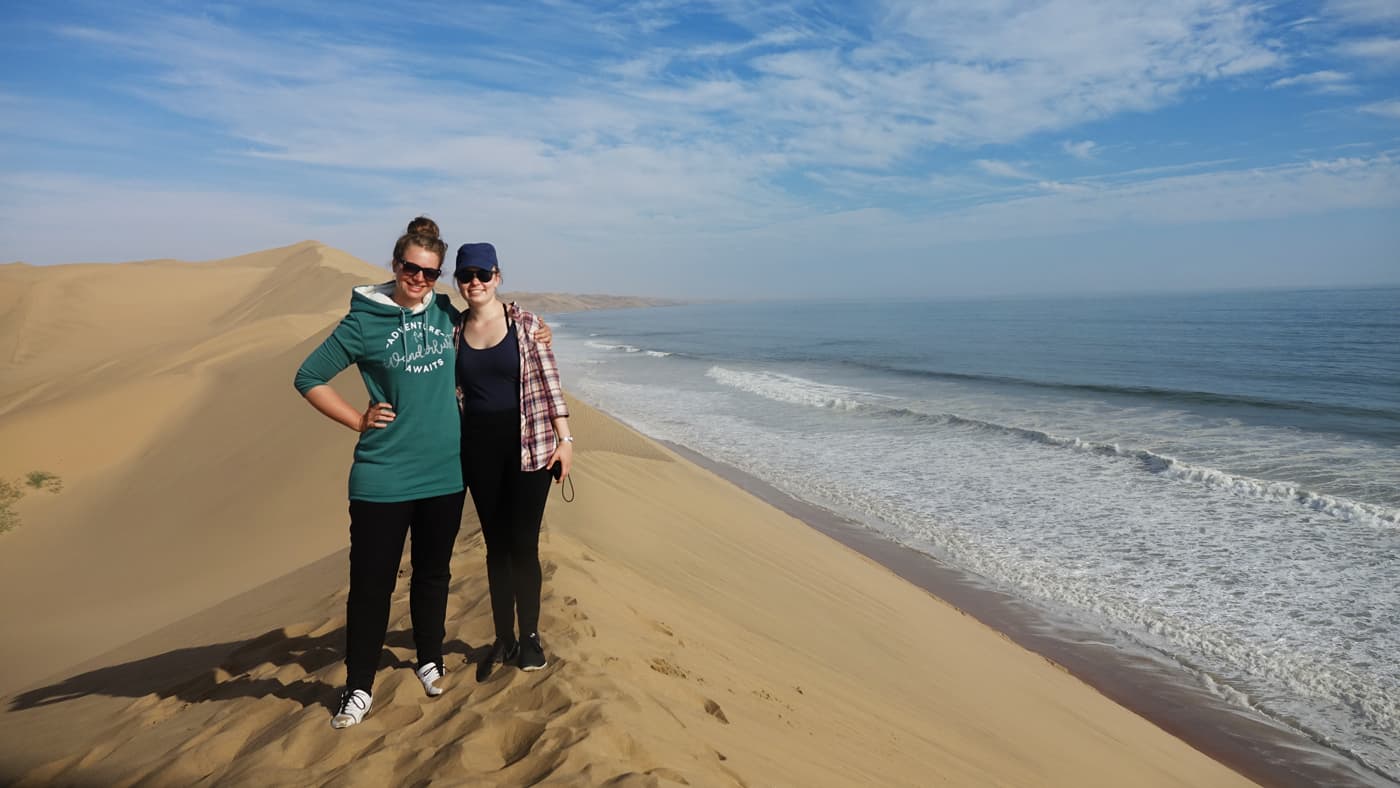 An der Westküste Namibias trifft die Namib Wüste auf den Atlantischen Ozean und auch diesen Anblick wollten wir uns nicht entgehen lassen, weshalb wir eine „Where the desert meets the sea“ SUV Tour buchten. In kleiner Runde ging es mit dem Geländewagen in die Wüste und rauf auf die Dünen. Was soll ich sagen? Es wurde nicht zu viel versprochen – der Anblick der Wüste, wie sie aufs Wasser trifft, war einfach magisch! Passend in dem Moment zog eine Schar Pelikane vorbei. Kommentar meiner Freundin dazu: „Jetzt fehlt nur noch ein Einhorn!“ Wie Recht sie hatte…