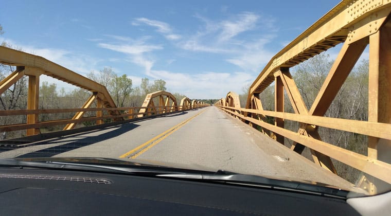 Der nächste Halt ist die einzig verbliebene Bogenbrücke aus Beton – die Rainbow Bridge. Im nahen Baxter Springs besuchen wir das Kansas Route 66 Visitor Center, das sich in der alten Phillips Gasoline Station befindet. Nach nur 48 Kilometern, und damit die kürzeste Strecke innerhalb eines Bundestaates, verlassen wir Kansas schon wieder.