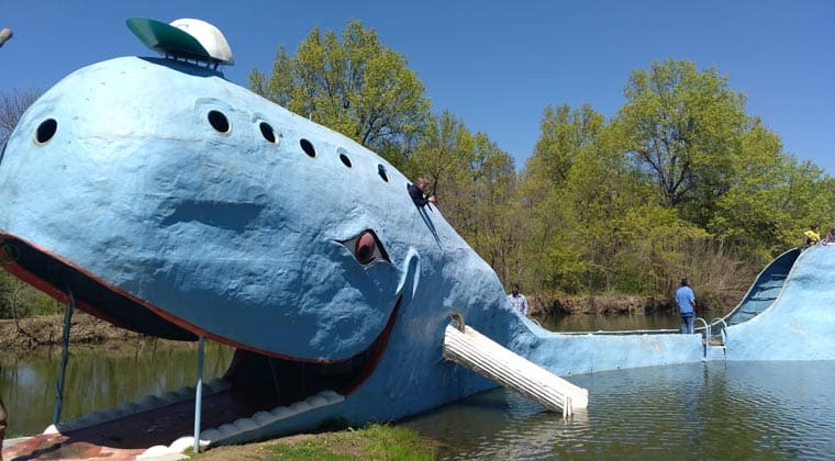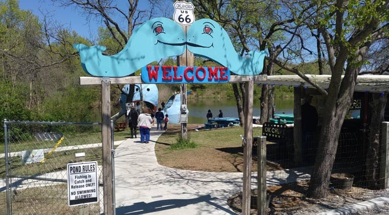 Ein weiterer ein Publikumsmagnet empfängt uns etwa 22 Kilometer vor Tulsa. In Catoosa, mit dem sechs Meter großen Blauen Wal, „The Blue Whale of Catoosa“, mittlerweile ein Wahrzeichen etabliert, erbaute Hugh Davis für seine Frau als Geschenk zum Hochzeitstag. Heute kümmern sich ein gemeinnütziger Verein und die Gemeinde Catoosa um das Areal rund um den Wal.