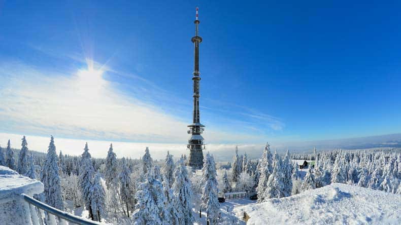 Das Fichtelgebirge: Schneeparadies im Nordosten Bayerns. Lust auf eine Schneeschuhwanderung zum zweithöchsten Berg des Fichtelgebirges, dem Ochsenkopf? Die Wanderprofis des Portals outdooractive.com empfehlen, beim Besucherbergwerk Gleißinger Fels an der Kreuzung Schmierenweg / Flecklstraße zu starten und dann bis Ochsenkopf-Ost hochzuwandern. Circa 250 Höhenmeter werdet ihr dabei überwinden. Aber dafür geht es die ja auch wieder runter 😉