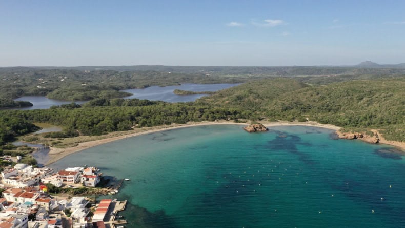 Im Südwesten Menorcas befindet sich dieser malerische Traumstrand mit feinem weißen Sand. Die Bucht ist breit und bietet dir viel Platz zum Entspannen und einen atemberaubenden Blick auf das glasklare, türkisblaue Wasser. Hier kannst du herrlich Tauchen, Schnorcheln und Schwimmen.