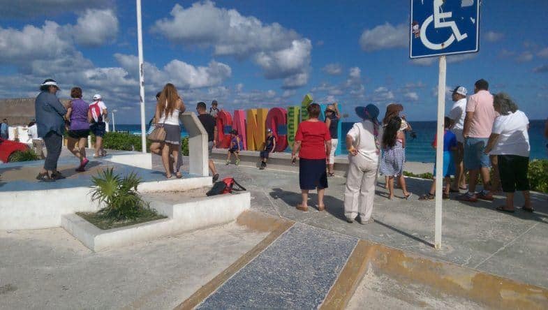Auch Playa Delfines ist in Cancun sehenswert. Ein schöner und recht großer Strand. Er ist deutlich breiter als der Playa Chac-Mool. Dadurch verteilen sich die Besucher stark. Besondere Anziehung versprüht anscheinend der Schriftzug „Cancun“, der oben an der Straße steht. Dort stehen die Leute sogar an, um sich vor der Traumkulisse fotografieren zu lassen.