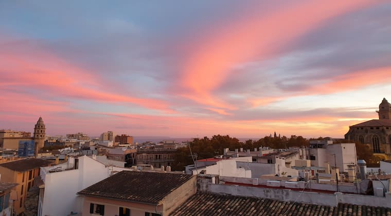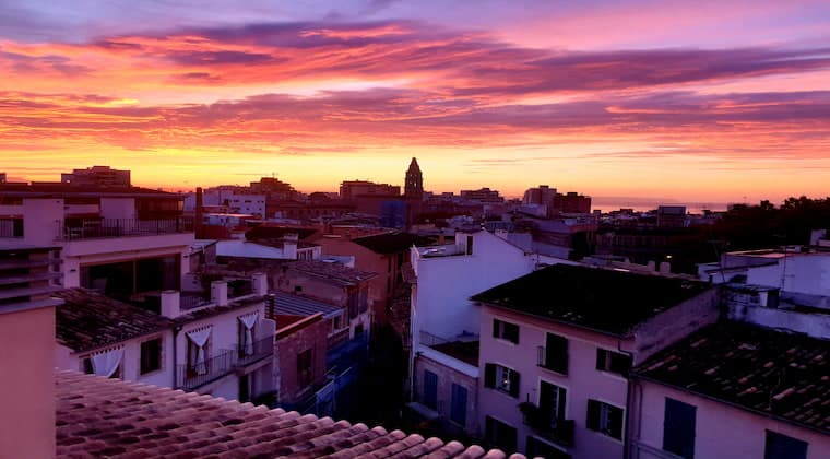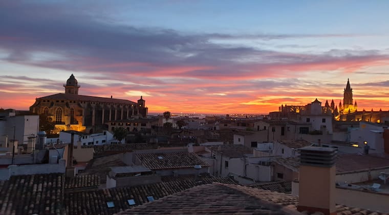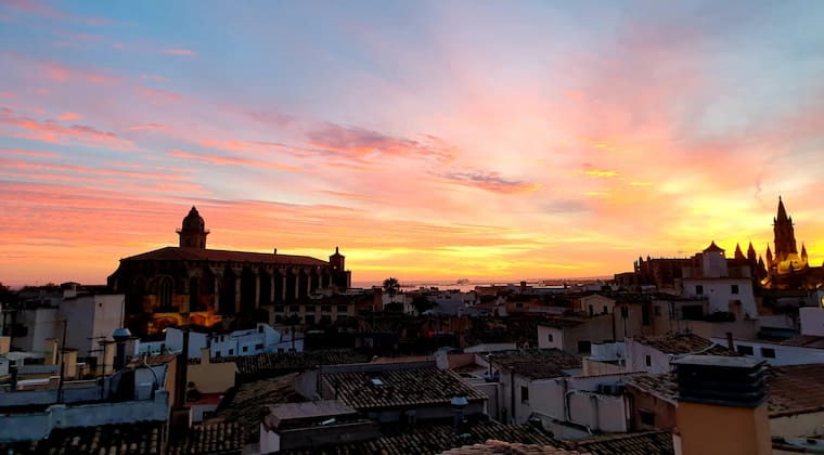 Über den Dächern Palmas lassen sich wunderschöne Sonnenuntergänge beobachten. Die Hotelbar im Hotel Es Princep eignet sich super. Atemberaubend ist der Sonnenuntergang auch von der Dachterrasse, des Aparthotel Palma Suites, die exklusiv den Hotelgästen zur Verfügung steh. Ein weiterer Hotspot in Palma ist die Mauer am Museum „Es Baluard“ mit Blick auf den Hafen.