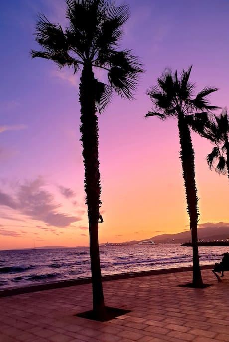 Ein Spaziergang am Meer, in Nähe zu Palma, mit wunderschönem Blick auf den Sonnenuntergang: das ist mein absolutes Tages-Highlight. Ich gehe eigentlich jeden Tag spazieren und die Strandpromenade zwischen Ciudad Jardi und Portixol zählt zu meinen Lieblingsstrecken. Zur linken das Meer, geradeaus der Blick auf die Kathedrale: die Sonne hast du immer im Blick und kannst den Sonnenuntergang perfekt genießen.