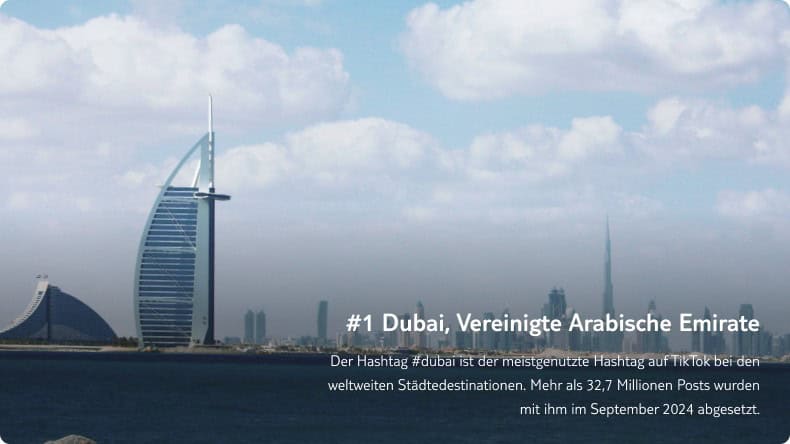 Städte auf der ganzen Welt ziehen durch beeindruckende Bilder, spannende Videos und Reels Touristen an. Aber welche Destinationen sind eigentlich auf TikTok gerade besonders im Trend? Wir haben die auf Basis einer Umfrage von Time Out (2024) gekürten 50 besten Destinationen weltweit unter die Lupe genommen und uns die Entwicklung der TikTok-Hashtags von April bis September 2024 angesehen.