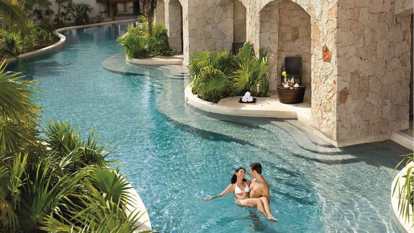 Das 5,5-Sterne Luxushotel Secrets Maroma Beach Riviera Cancun liegt direkt am Strand im ruhigen Ort Puerto Morelos. Genießt eure Zweisamkeit an einen der Pools, dem feinen Sandstrand oder im großen Spa. In den Flitterwochen freut ihr euch auf einige Specials, z. B. 15% Rabatt auf Spa-Anwendungen, ein romantisches Frühstück im Bett inklusive Mimosas, Früchte und Wein. Bei Buchung spezieller Honeymoon Pakete erhaltet ihr sogar noch weitere Vorteile dazu, wie exklusive Massagen und ein Candle Light-Dinner.