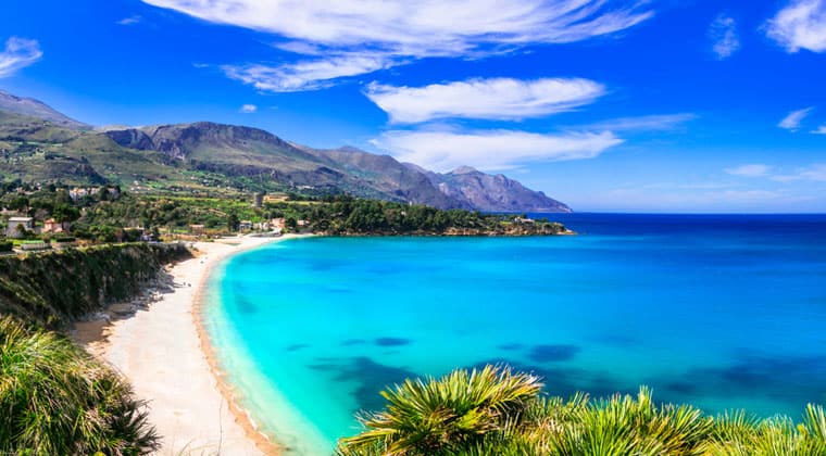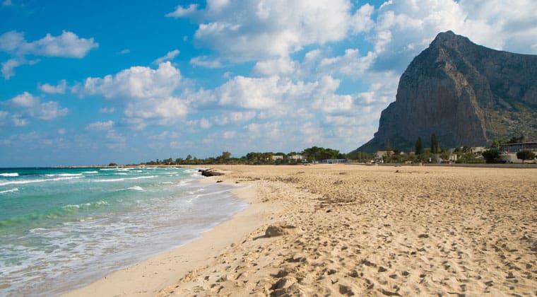 Majestätisch „wacht“ der Monte Monaco über ein weiteres sizilianisches Strandparadies, und zwar den ebenfalls karibisch anmutenden Strand von San Vito lo Capo im Nordwesten Siziliens. Die circa 3 Kilometerlange Badebucht erwartet euch mit kristallklarem, smaragdgrünem Wasser. Auch Familien mit kleineren Kindern finden hier pures Badevergnügen, denn der weiße und feinsandige Strand geht sanft ins Meer über.