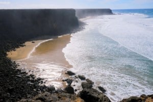 Willkommen in den atemberaubenden Klippenlandschaften an der nördlichen Westküste der Insel. Genieß den einmaligen Blick von den Klippen über den Ozean und in die Buchten mit feinem Sand, die dir hier zu Füßen liegen. In der kleinen Bucht des Örtchens Los Molinos türmen sich oft riesige Wellen auf. Von den umliegenden Klippen kannst du sie besonders gut beobachten. Etwas weiter südlich, bei Aquas Verdes haben sich in der zerklüfteten Felslandschaft Naturpools gebildet.