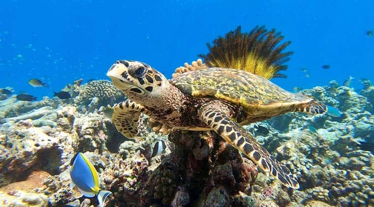 Je nach Aktivitätsbedürfnis entspannen wir am Pool, gehen schnorcheln oder leihen uns ein SUP, welches für All Inclusive Gäste inklusive ist. Die angebotenen Aktivitäten von Yoga, Dance-Workouts bis hin zu Kreativ-Angeboten wie Holzmalerei, Palmenblattfalten oder Kochkurse sind vielfältig und bescheren uns abwechslungsreiche Tage. Es werden zahlreiche Ausflüge zum Schnorcheln angeboten, aber auch im Hausriff bekommen wir einen guten Eindruck von der vielfältigen und bunten Unterwasserwelt.