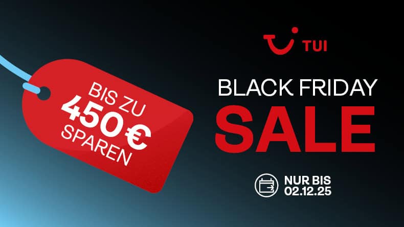 Derzeit locken überall Angebote für Elektronik, Klamotten und Lebensmittel. Warum dann nicht auch beim Reisen sparen? Vom 21.11. bis 02.12.2025 könnt ihr bei unserem TUI Black Friday Sale bis zu 450 Euro pro Buchung extra sparen. Wir zeigen euch eine kleine Auswahl der besten Kracherangebote für euren Winter- bzw. Frühlingsurlaub in der Sonne oder im Schnee!