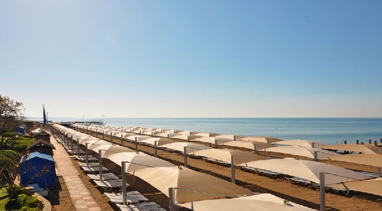 Wer an der türkischen Riviera nur an überdimensionierte Hotelkomplexe denkt, wird in diesem charmanten kleinen Resort positiv überrascht sein. Der kleine Ort Beldibi befindet sich rund 15 Kilometer entfernt von Kemer und erstreckt sich entlang der Küste vor dem Panorama des Taurusgebirges. An die langen Kiesstrände schließen sich unmittelbar dichte Pinienwälder und Berge an. In dieser traumhaften Lage direkt am Strand ist der kompakte Club mit nur 190 Zimmern zu Hause. Im gepflegten Garten gibt es zahlreiche lauschige Möglichkeiten, um entspannt die Seele baumeln zu lassen. Der Blick über das glasklare Wasser lässt sich am besten von einem der Liegeplätze auf dem clubeigenen Steg genießen.