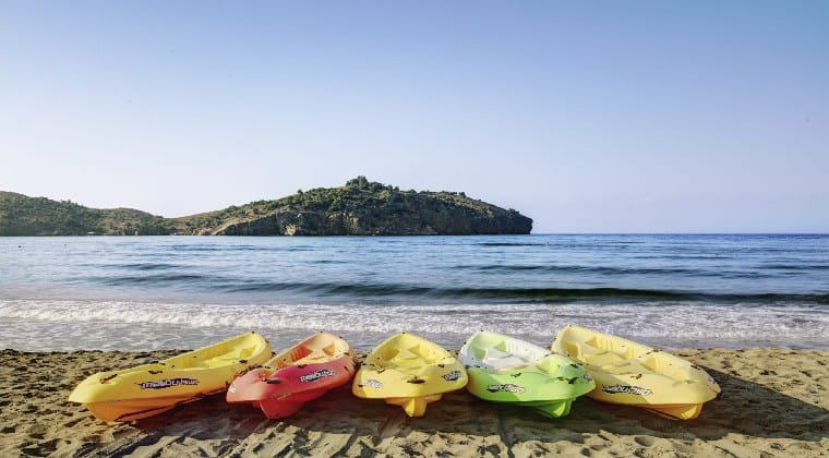 Tagsüber könnt ihr verschiedenen Fitnesskurse ausprobieren, bei geführten Mountainbike-Touren die griechische Landschaft erkunden oder ein paar Runden Beachvolleyball spielen.