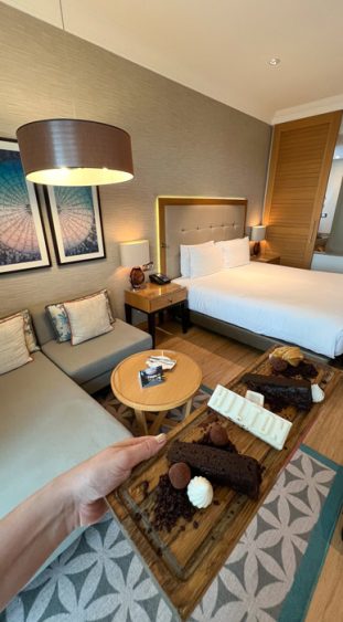 Am Abend testeten wir die Kulinarik eines der drei Spezialitätenrestaurants des Hotels. Im asiatischen Restaurant „Nami“ genossen wir ein köstliches 7-Gänge-Menü. Dieses war nicht nur ein Highlight für den Gaumen, sondern auch für das Auge: Die Gerichte waren wie kleine Kunstwerke angerichtet. Unser persönliches Highlight, das Sushi-Surfbrett, was wir so noch nie zuvor gesehen haben. Die ruhige Hotelanlage eignet sich besonders gut für Paare, die einfach mal die Seele baumeln lassen wollen und die gemeinsame Zeit zu zweit genießen möchten.