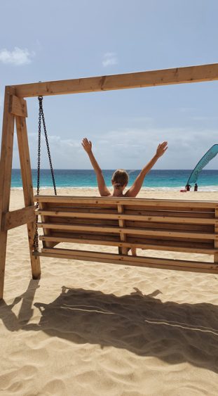 Letzter Stopp unserer Reise – der ROBINSON CABO VERDE – ein richtiges Highlight! Dieser Adults-only Club hat eine Traumlage direkt am 8 Kilometer langen Sandstrand von Santa Maria und lässt nicht nur das Herz von Wassersportlern höher schlagen. Im Club habt ihr eine eigene Wassersportstation zum Kite- und Windsurfen, was perfekt ist, um die hohen Atlantikwellen optimal auszunutzen. Wer es lieber etwas gemütlicher mag, kann es sich an der lässigen Strandbar des Clubs mit leckeren Drinks und dem Blick auf das türkisblaue Wasser gut gehen lassen.