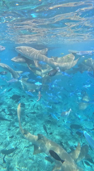 In diesem Paradies für Wassersportfans haben wir direkt zwei besondere Ausflüge getestet. Zum einem die Schnorchel-Safari, bei dir wir mit dem Boot ein Stückchen auf das offene Meer hinaus gefahren sind. Dort haben wir bunte Korallen und riesige, beeindruckende Fischschwärme gesehen. Und zum anderen waren wir mit Ammenhaien tauchen! Das war ein Erlebnis, das wir in nie im Leben vergessen werden. Um ehrlich zu sein, mussten wir beim Sprung ins Wasser unseren ganzen Mut zusammennehmen. Aber es hat sich mehr als gelohnt! Die 20 bis 30 Haie sind total friedlich an uns vorbei geschwommen. Sie waren zwar deutlich größer als wir erwartet hatten, aber es war sehr faszinierend die Tiere so hautnah kennenzulernen. Eine tierische Begegnung der etwas anderen Art, die wir jedem Abenteuerlustigen nur empfehlen können.