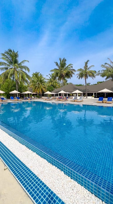 Weiter ging es für uns ins paradiesische Kuramathi Maldives. Als eine der größten Urlaubsinseln der Malediven ist sie ein wahrer Allrounder mit unzähligen Möglichkeiten. Allein bei der Auswahl an 12 Restaurants und 5 Bars kann es nicht langweilig werden. Hinzu kommt die Wahl zwischen vier Pools und dem türkisblauen Meer – Urlaubs-Entscheidungen, die das Herz höherschlagen lassen.