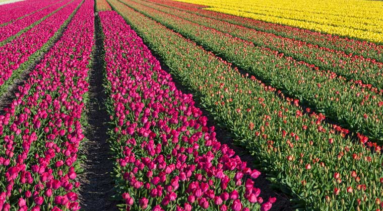 Aber nicht nur der Blumenpark im Keukenhof ist zur Tulpenblüte in Holland einen Besuch wert, auch die umliegenden Blumenfelder bieten großartige Entdeckungen auf dem Fahrrad oder zu Fuß. Neben dem Keukenhof ist das Blumenzwiebel-Anbaugebiet Bollenstreek der beliebteste Ort für Liebhaber der Tulpen. Der pittoreske Bollenstreek ist eine der blumenreichsten Regionen des Landes und für seine riesengroßen Felder mit farbenprächtigen Blumen bekannt. Nordwestlich von Leiden gelegen lockt der Bollenstreek mit dem atemberaubenden Duft seiner Tulpen, es werden dort aber auch andere Zwiebelblumen wie Hyazinthen und Narzissen angebaut.