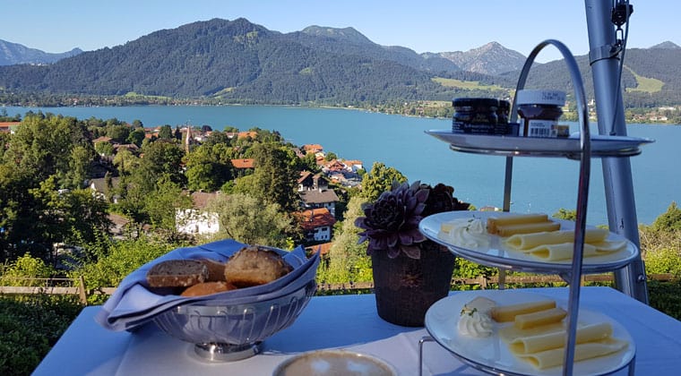 Circa 20 Kilometer lang ist die Umrundung – perfekt für eine kleine Radtour, Spaziergang oder auch einen Lauf. Für kulinarische Zwischenstopps eignen sich die umliegenden kleinen Dörfer – alle idyllisch schön am See gelegen. Unsere Lieblingsorte für Zwischenstopps in einem Café oder Biergarten waren Tegernsee, Rottach-Egern und Bad Wiessee. Als Urlaubsunterkunft hatten wir uns für das Hotel „DAS TEGERNSEE“ entschieden. Wenn ihr es elegant mögt und einen unglaublichen Panoramablick genießen wollt, dann seid ihr hier genau richtig.