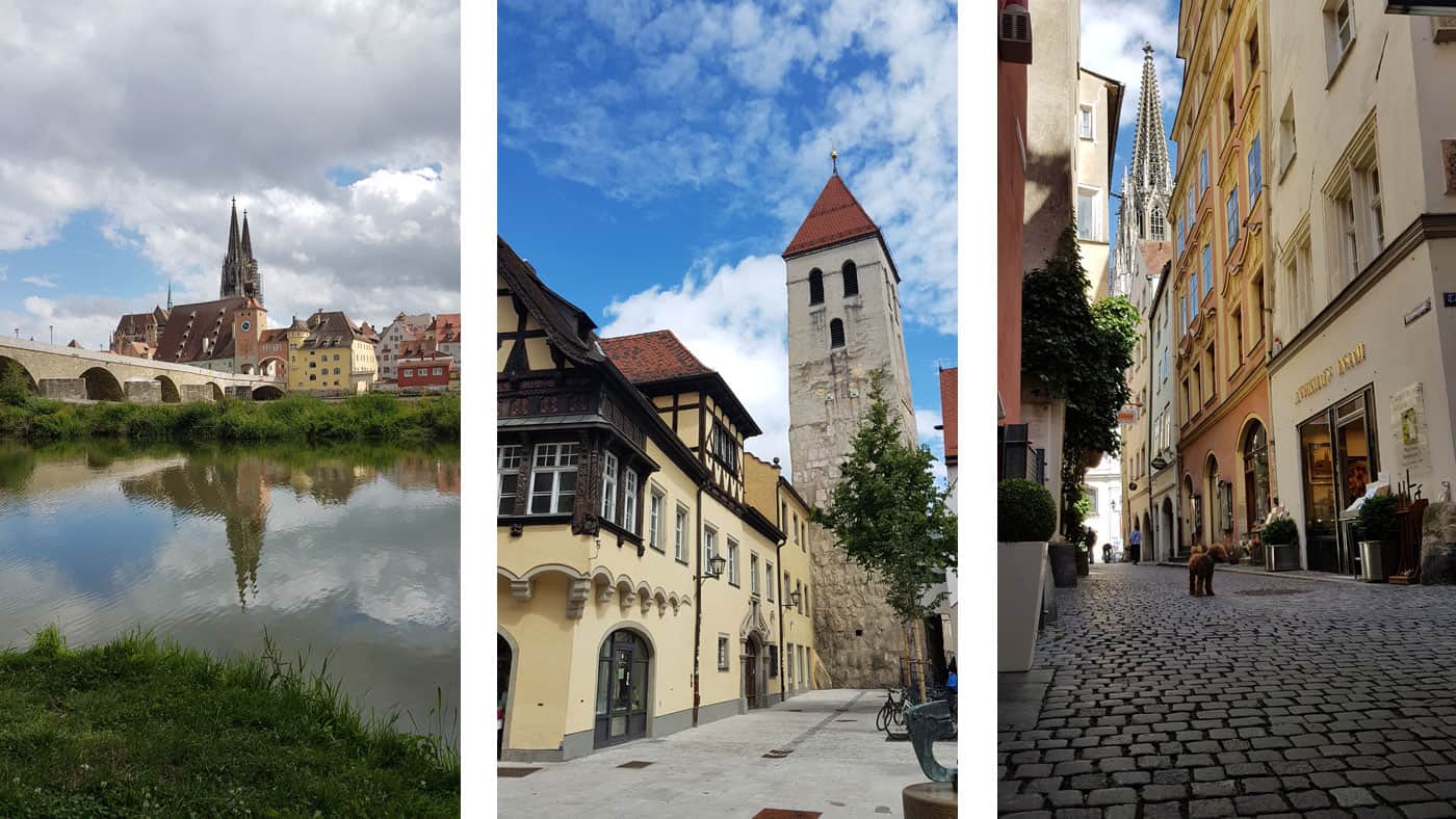 Was für ein Auftakt! Nach zwei Tagen intensiver Erkundungen kann ich sagen: Regensburg gehört für mich zu den schönsten Städten Deutschlands. Die historische Altstadt – nicht zu groß, nicht zu klein – lädt zum Bummeln ein. Die vielen inhabergeführten Restaurants und Cafés geben der malerischen Stadt ein lässiges Flair. Die bekannte „Steinerne Brücke“ führt direkt hinein in die kleinen verwinkelten Gassen. An warmen Sommerabenden dient das lange Donauufer als Ort des Zusammentreffens vor der wunderschönen Kulisse.