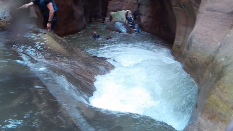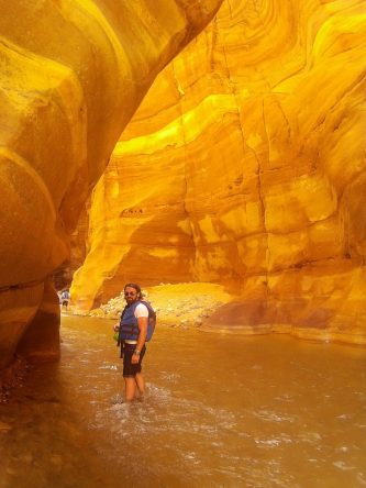 Wir passieren als nächstes den Siq, eine schmale Schlucht, die an der engsten Stelle nur einen Meter misst. Die Wände ragen steil und glatt poliert in die Höhe und schaffen eine magische Atmosphäre. Nach mehr als einem Kilometer eröffnet sich ein schmaler Blick auf ein imposantes und das wohl bekannteste Gebäude der Stadt: das ehemalige Schatzhaus, was eigentlich ein Grab ist. Wie beeindruckt müssen erst die Besucher gewesen sein, die nach einer anstrengenden Reise durch die Wüste lange vor unserer Zeit diesen Weg begangen haben?