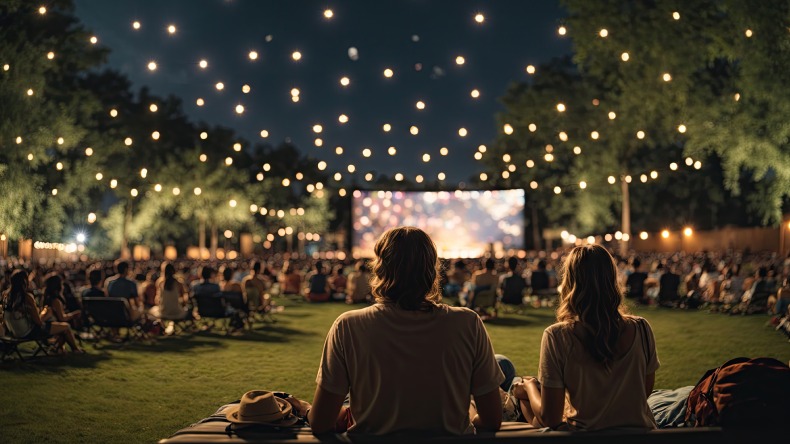In einer lauen Sommernacht in Paris unter freiem Himmel sich eng aneinander kuscheln und einen Film genießen. | AdobeStock/Anna