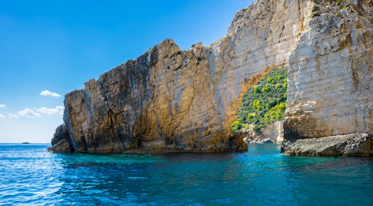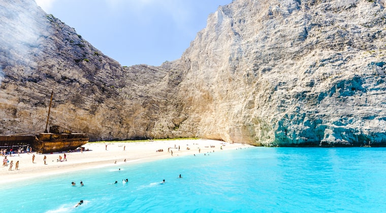 Die schöne griechische Insel Zakynthos ist ein wahres Strandparadies. Die Schmugglerbucht mit ihrem Schiffswrack ist wohl eines der bekanntesten Fotomotive Griechenlands. Die Bucht erreichst du ausschließlich per Boot. Am besten kommst du sehr früh oder ganz spät – in der Hochsaison kann es hier sehr voll werden. Es gibt wunderschöne Tauchreviere, die blauen Grotten, die sich u.a. zum Kajaken eignen und vielseitige Badeorte von Sandstrand bis Felsbuchten.