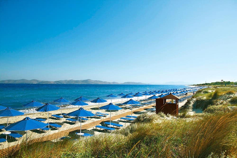 Das kinderfreundliche 4-Sterne Hotel Caravia Beach nahe Marmari liegt direkt am flach abfallenden, feinsandigen Strand und bietet alles, was das Familienherz begehrt: einen Kinderclub für Kids ab 4 Jahren, einen Kinderpool, Kinderanimation, Kinderbuffet, Spielplatz und Minidisco. Auf der weitläufigen, gepflegten Anlage sind 297 Zimmer verteilt. Die modernen Bungalows, bestehend aus zwei Zimmern, die durch eine Schiebetür voneinander abgetrennt sind, eignen sich am besten für Familien. Das Hotel Caravia Beach überzeugt mit einer Weiterempfehlungsrate von 97 Prozent und mit den Auszeichnungen TUI TOP Quality und TUI Umwelt Champion.