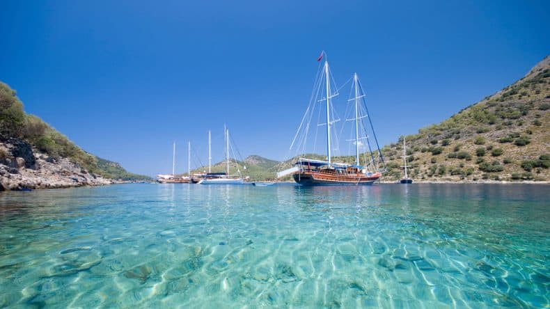 Die Ägäis beschreibt das Gewässer zwischen dem Osten Griechenlands und dem Westen der Türkei. An der türkischen Ägäis findet ihr romantische Badebuchten, lange Sandstrände, Pinienwälder, Felsgebilde und Olivenbäume. Bei Temperaturen von bis zu 33 Grad kühlt man sich gerne im Meer ab und wieso nicht gleich auf dem Meer den Urlaub verbringen? So ist der nächste Tauchgang nur einen Sprung entfernt. Ihr könnt euch entspannt von einem zum anderen Ort schippern lassen, viele verschiedene schöne Städte, Küstenabschnitte und Buchten erkunden und die Türkei von einer ganz neuen Seite kennenlernen. Sonnenbaden auf dem Deck, zahlreiche Möglichkeiten zu Schnorcheln, traumhafte Naturpanoramen und tolle Landausflüge warten auf euch. Auf einem Yachturlaub an der türkischen Ägäis ist Langweile ein Fremdwort!