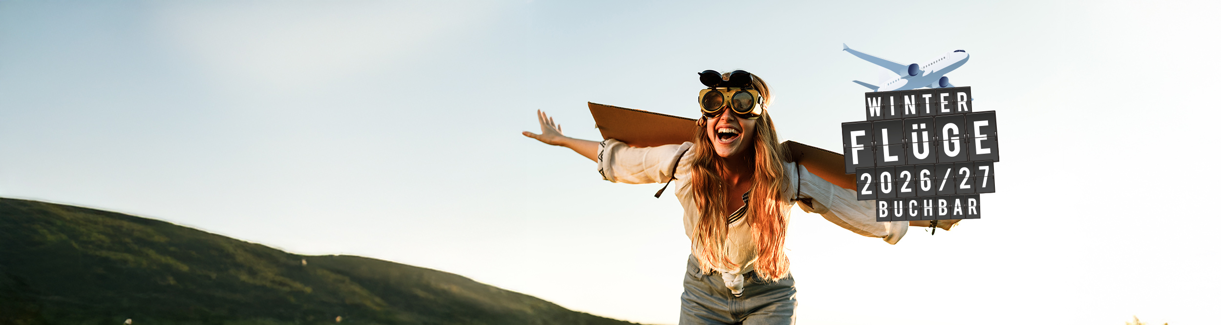 *Gültig bei Neubuchung vom 16.12.25 bis 05.01.2026, für Flüge vom 17.12.25. bis 30.04.26 begrenztes Kontingent pro Flug. Ermäßigung bezieht sich auf den Oneway-Flugpreis mit TUI fly und versteht sich zzgl. passagierbezogener Entgelte. Von der Ermäßigung ausgeschlossen ist der Aufschlag für den Perfect-Tarif. Mögliche weitere Zusatzkosten: Bei Buchung über das Servicecenter fallen 5 € Serviceentgelt pro Person und Strecke an; bei Buchung im Reisebüro können Serviceentgelte anfallen. Bei TUI fly-Flügen zum Pure-Tarif fallen für den Check-in am Flughafenschalter 25 € Serviceentgelt pro Person (ab vollendetem 2. Lebensjahr) an; keine Zusatzkosten für Web Check-in. Abhängig vom gebuchten Tarif ggf. Aufpreis für Gepäckaufgabe.