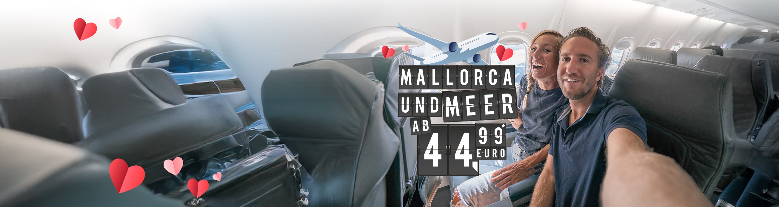 **Gültig bei Neubuchung vom 10.02.26 bis 16.02.2026, für Flüge vom 10.02. bis 31.10.2026, begrenztes Kontingent pro Flug. Ermäßigung bezieht sich auf den Oneway-Flugpreis mit TUI fly und versteht sich zzgl. passagierbezogener Entgelte. Von der Ermäßigung ausgeschlossen ist der Aufschlag für den Perfect-Tarif. Mögliche weitere Zusatzkosten: Bei Buchung über das Servicecenter fallen 5 € Serviceentgelt pro Person und Strecke an; bei Buchung im Reisebüro können Serviceentgelte anfallen. Bei TUI fly-Flügen zum Pure-Tarif fallen für den Check-in am Flughafenschalter 25 € Serviceentgelt pro Person (ab vollendetem 2. Lebensjahr) an; keine Zusatzkosten für Web Check-in. Abhängig vom gebuchten Tarif ggf. Aufpreis für Gepäckaufgabe.