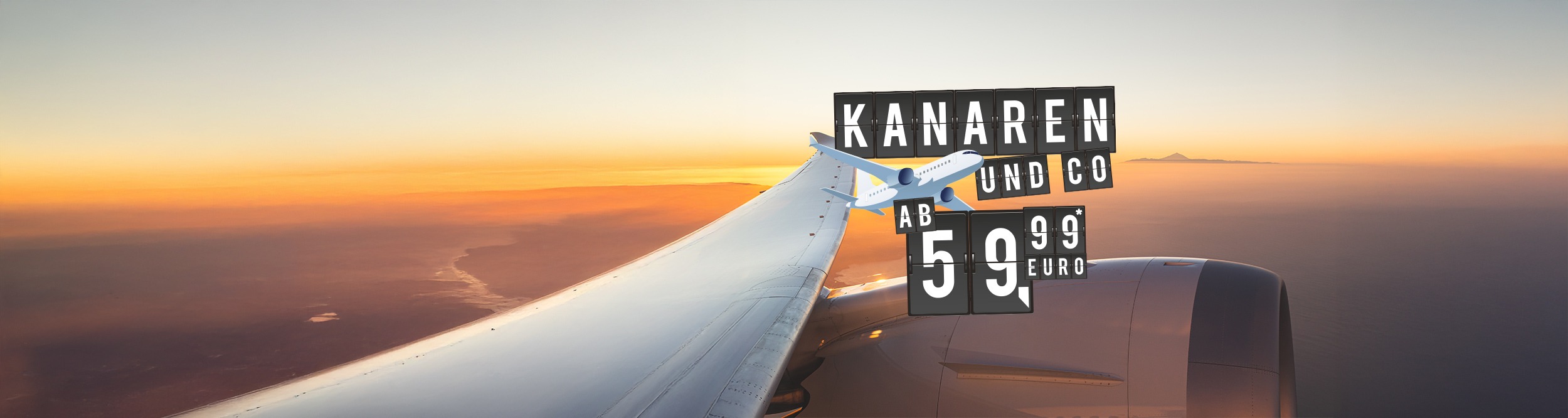 *Gültig bei Neubuchung vom 03.03. bis 09.03.2026, für Flüge vom 04.03. bis 30.04.2026, begrenztes Kontingent pro Flug. Ermäßigung bezieht sich auf den Oneway-Flugpreis mit TUI fly und versteht sich zzgl. passagierbezogener Entgelte. Von der Ermäßigung ausgeschlossen ist der Aufschlag für den Perfect-Tarif. Mögliche weitere Zusatzkosten: Bei Buchung über das Servicecenter fallen 5 € Serviceentgelt pro Person und Strecke an; bei Buchung im Reisebüro können Serviceentgelte anfallen. Bei TUI fly-Flügen zum Pure-Tarif fallen für den Check-in am Flughafenschalter 25 € Serviceentgelt pro Person (ab vollendetem 2. Lebensjahr) an; keine Zusatzkosten für Web Check-in. Abhängig vom gebuchten Tarif ggf. Aufpreis für Gepäckaufgabe.