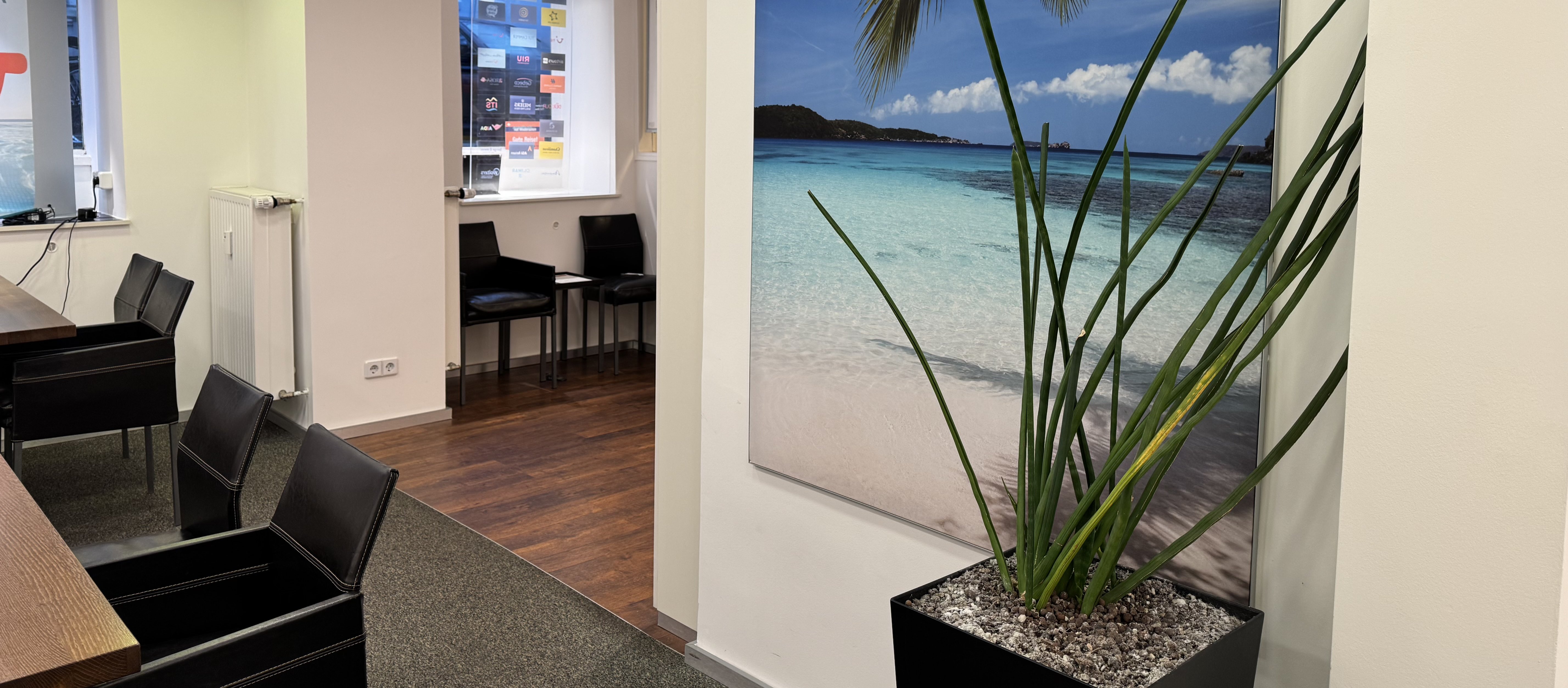 Schön, dass Sie hier sind! Profitieren Sie von unserer langjährigen Erfahrung rund um das Thema Urlaub. Unser engagiertes Team steht Ihnen mit Fachwissen und Leidenschaft zur Seite, um Ihre individuellen Reisewünsche zu erfüllen. Finden Sie gemeinsam mit uns Ihre persönliche Traumreise. Wir freuen uns auf Ihre Urlaubsanfrage, egal ob persönlich bei uns im Reisebüro, per Telefon oder auch per Mail.