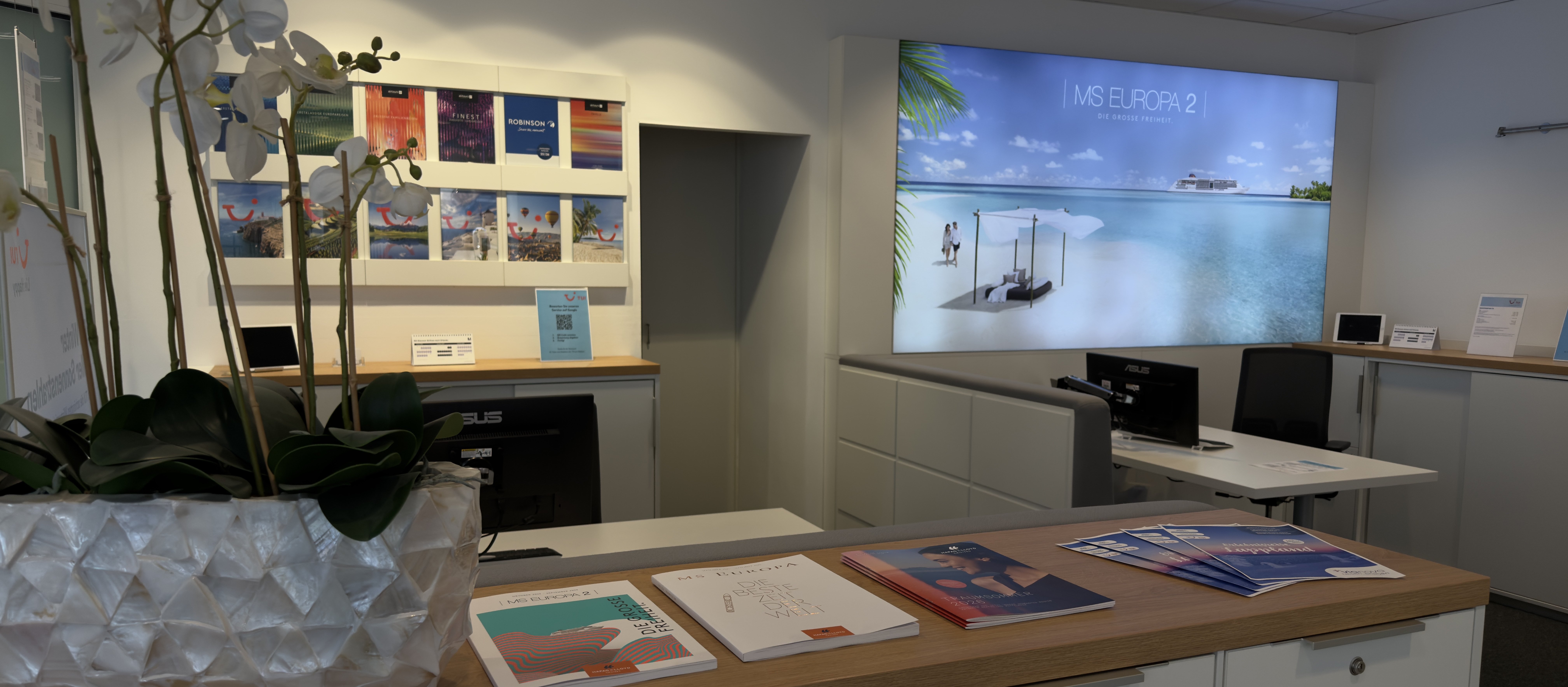Euer Traumurlaub beginnt hier. Egal ob ihr von einem entspannten Strandurlaub, einer aufregenden Städtereise, einer spannenden Rundreise oder einer luxuriösen Kreuzfahrt träumt – wir sind euer kompetenter Partner für maßgeschneiderte Reisen. Unser erfahrenes Team steht euch zur Seite, um eure individuellen Reisewünsche zu erfüllen. Vereinbart einen Termin über unsere Homepage und besucht uns persönlich im Reisebüro oder kontaktiert uns bequem per E-Mail. Wir finden die perfekte Reise für euch!