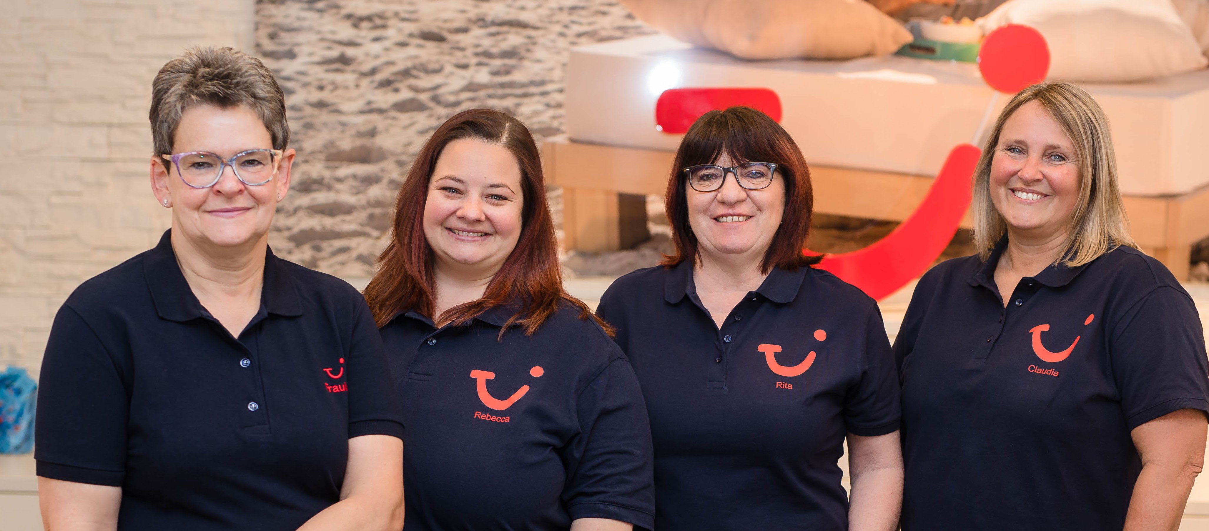 Ihr Traumurlaub startet genau hier – bei uns. Wir sind vier engagierte und erfahrene Reisespezialistinnen, die sich darauf freuen, Ihre Urlaubsträume Wirklichkeit werden zu lassen. Eine persönliche und herzliche Beratung ist für uns selbstverständlich – denn Ihre Zufriedenheit ist unser oberstes Ziel. Um sicherzustellen, dass wir uns ausreichend Zeit für Ihre Reiseplanung nehmen können, bieten wir Ihnen die Möglichkeit, vorab einen Termin mit uns zu vereinbaren. So können wir Ihre Wünsche in Ruhe besprechen und die perfekte Reise für Sie zusammenstellen. Wir freuen uns darauf, Sie kennenzulernen und Ihre Reiseabenteuer zu gestalten! Ihr Reisebüro-Team vom TUI ReiseCenter St. Leon-Rot Frauke Querner, Rita Obermaier, Claudia Thome und Rebecca Rostock