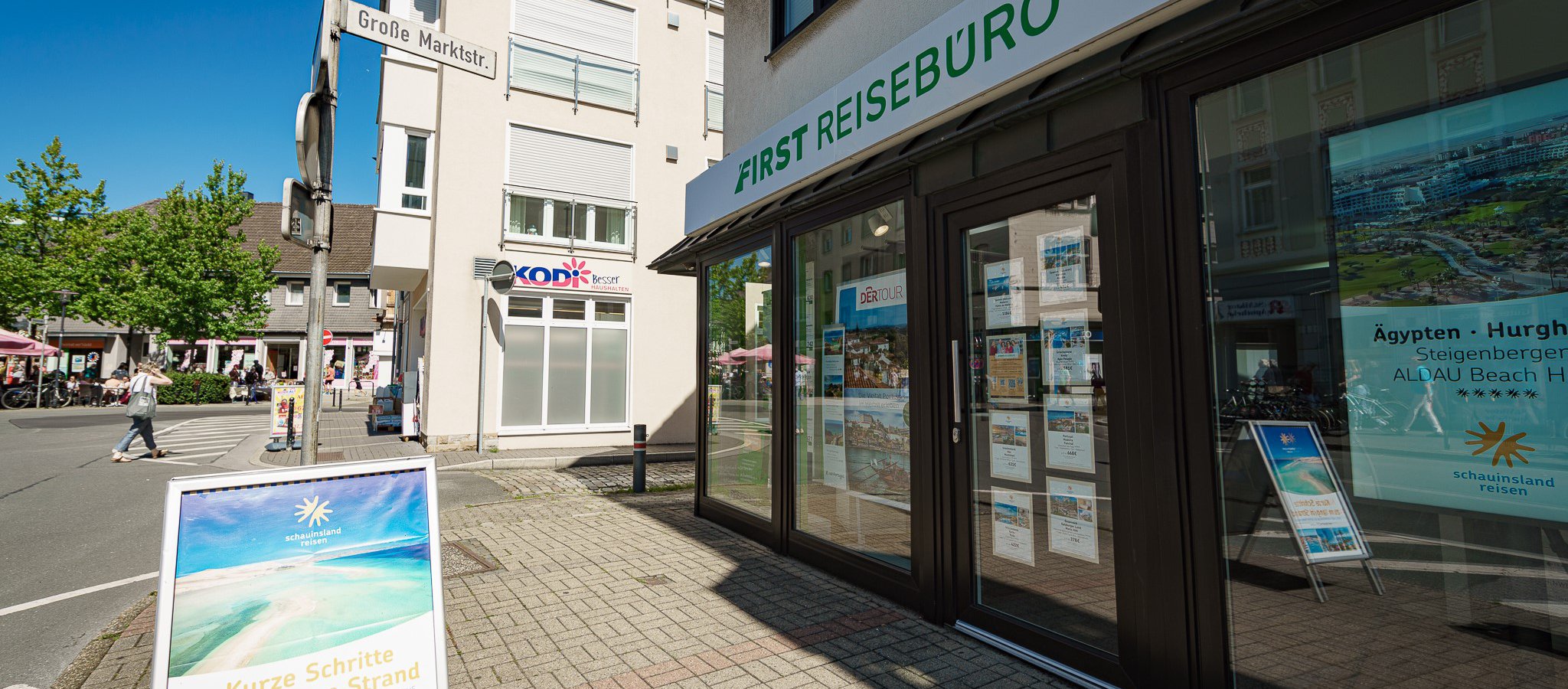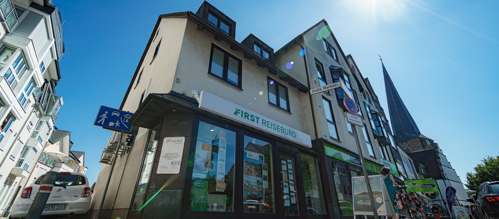 Direkt gegenüber des FIRST REISEBÜROs befindet sich eine Tiefgarage.
