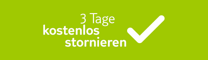 Du kannst deinen auf TUI.com gebuchten Urlaub innerhalb von drei Tagen nach Buchungszeitpunkt kostenlos stornieren (ausgenommen Wochenende und Feiertag(e)). Hast du zum Beispiel an einem Montag gebucht, kannst du uns den Stornierungswunsch bis spätestens Donnerstag mitteilen. Hast du an einem Donnerstag gebucht, gilt die Frist bis spätestens Dienstag.