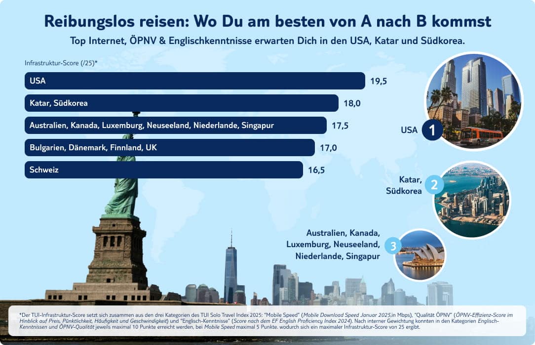 Der TUI Solo Travel Index 2025 zeigt, dass die USA,